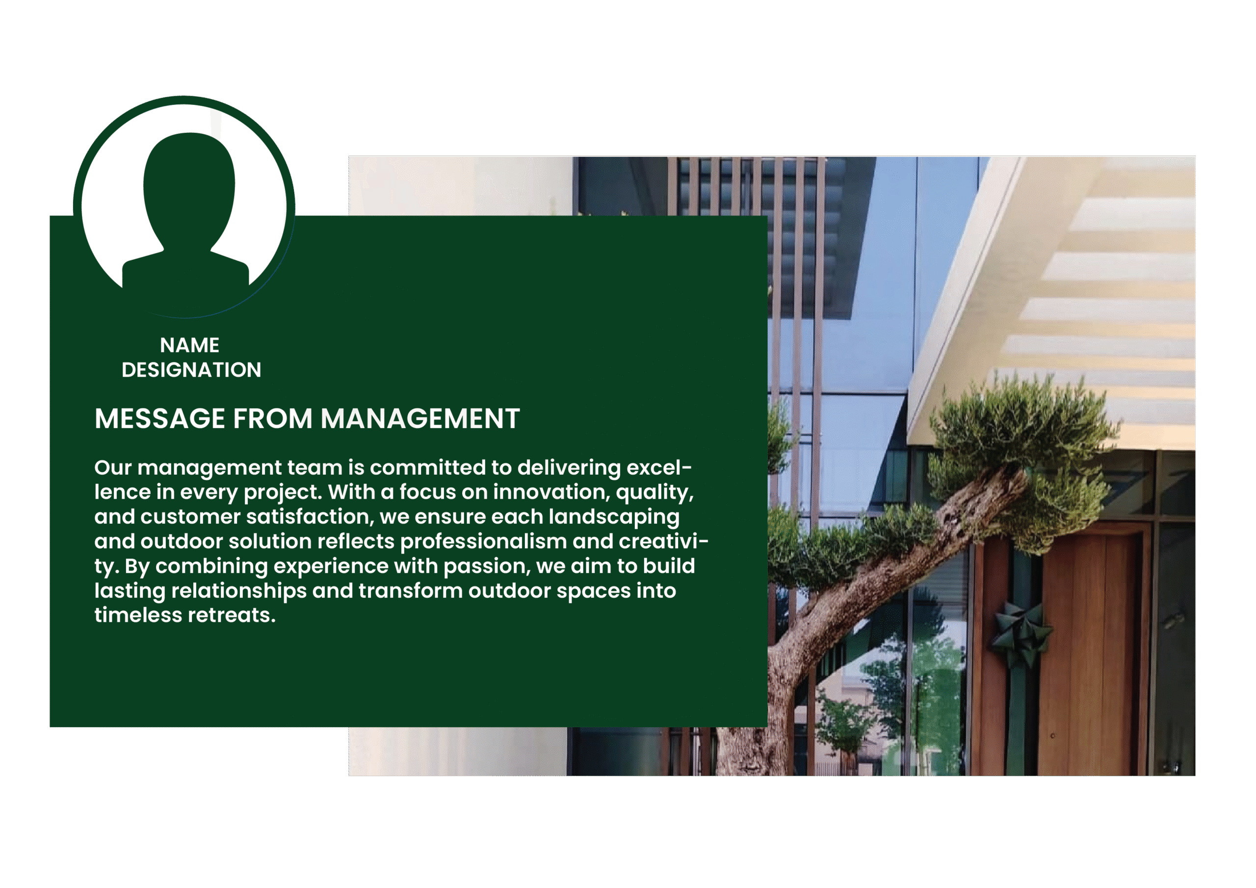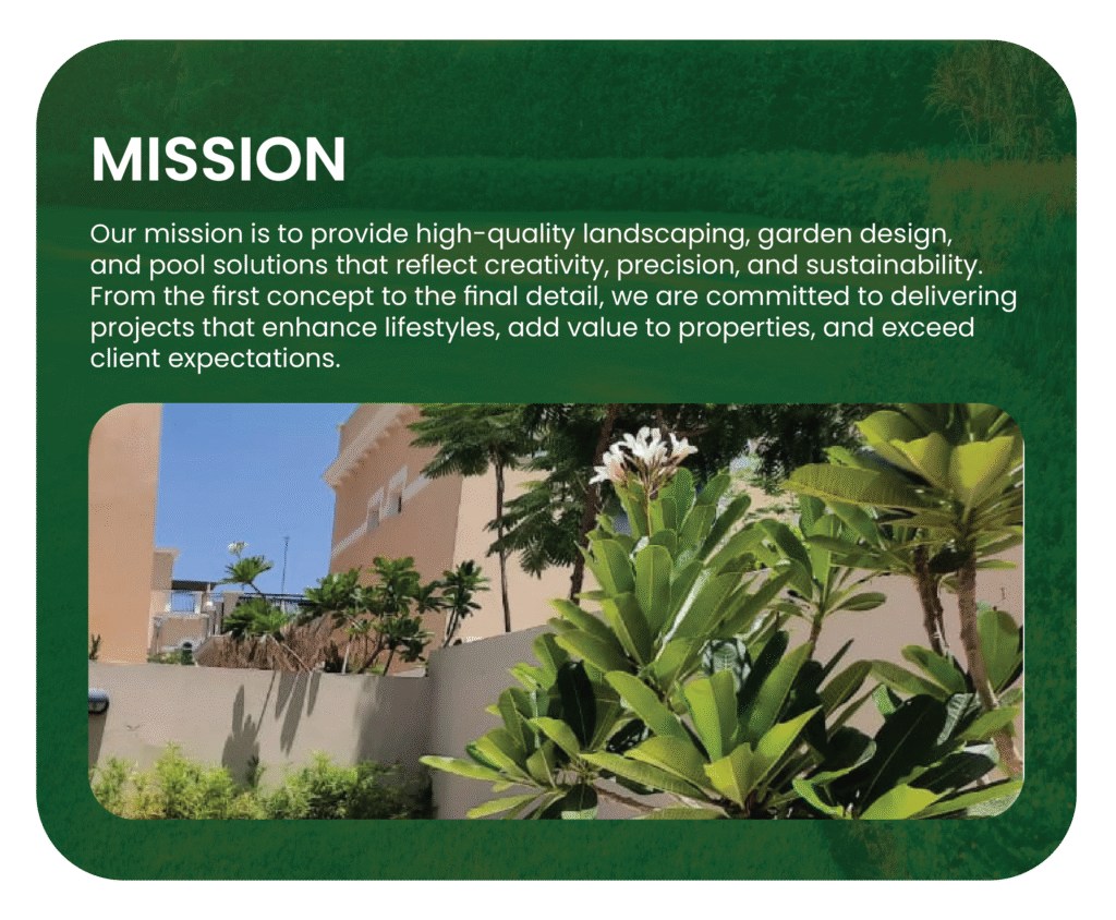 With years of experience and a passion for creating exceptional outdoor environments, we deliver solutions that combine innovation, quality, and elegance. Our dedicated team works closely with you to understand your vision, ensuring every project is tailored to your needs and completed to the highest standards. Whether it’s lush greenery, elegant hardscapes, or luxurious water features, we bring harmony and style to every corner of your space. Using premium materials and advanced techniques, we guarantee lasting beauty and functionality. Let us transform your landscape into a stunning retreat that enhances your lifestyle and leaves a lasting impression.