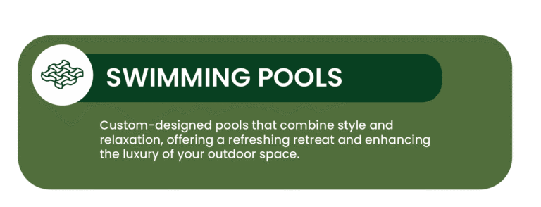 Transform your outdoors into a stunning retreat with our expert Landscaping, Garden Design, and Swimming Pool Solutions. From lush greenery to elegant hardscapes and luxurious water features, we blend beauty, functionality, and precision to create spaces that reflect your lifestyle. With premium materials and expert craftsmanship, we deliver lasting elegance and value.